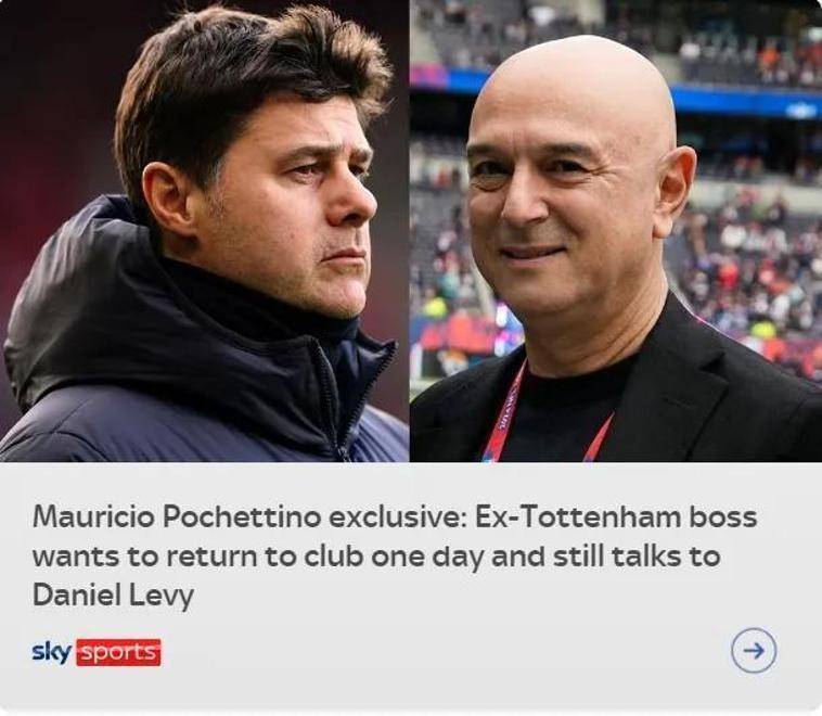 美国队主帅波切蒂诺在接受天空体育采访时谈到了自己的未来计划。他表示自己一直希望能有机会回到热刺,并透露自己和热刺主席列维的关系依然很好。
