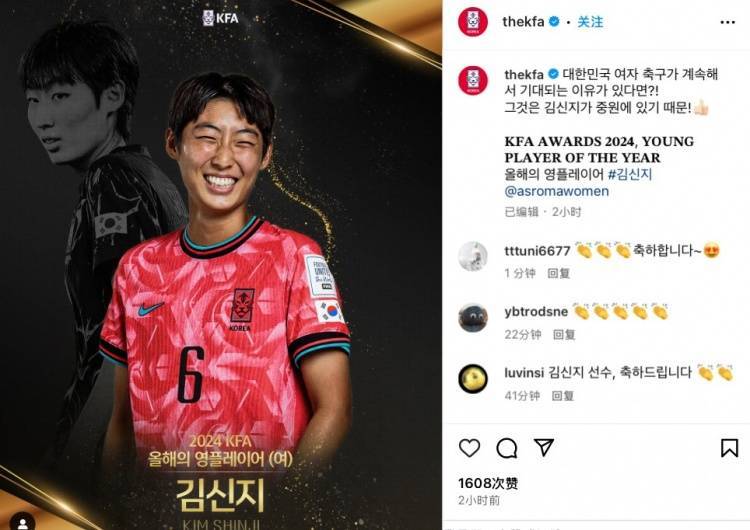 直播吧3月31日讯 韩国足协今日发布公告,公布了该足协2024年度各项最佳奖项得主,其中年度最佳年轻球员得主为18岁小将梁民革。