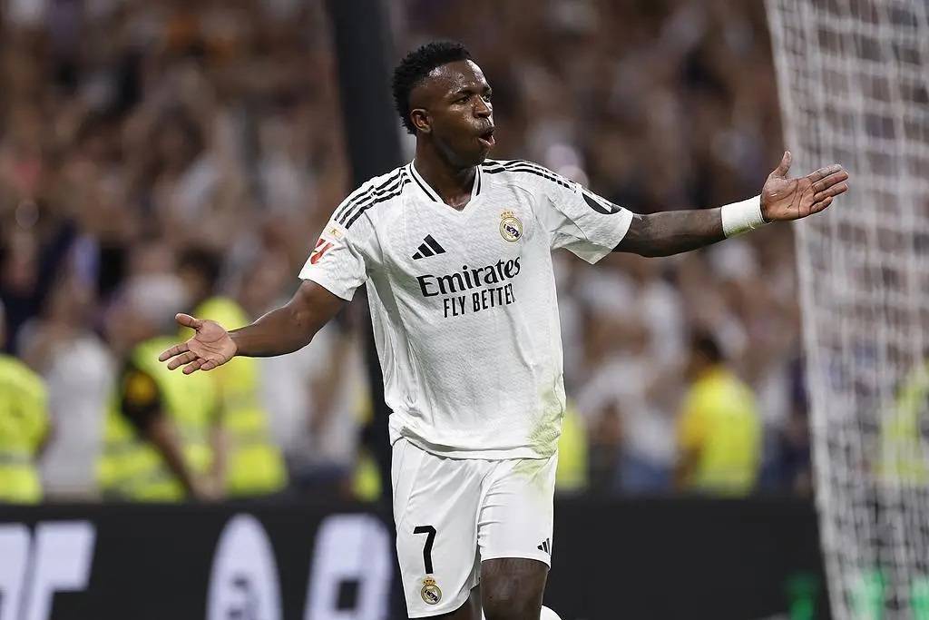第49分钟,皇马的左侧角球开到禁区,贝林厄姆前点摆渡,维尼修斯抢点打门得手。皇马将比分扳成1:1平。